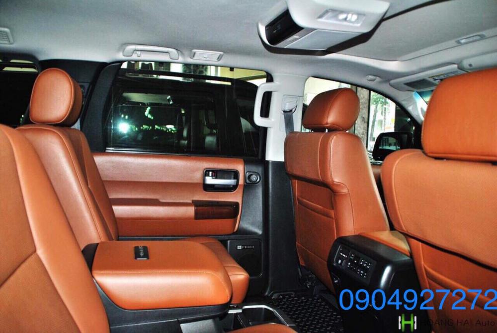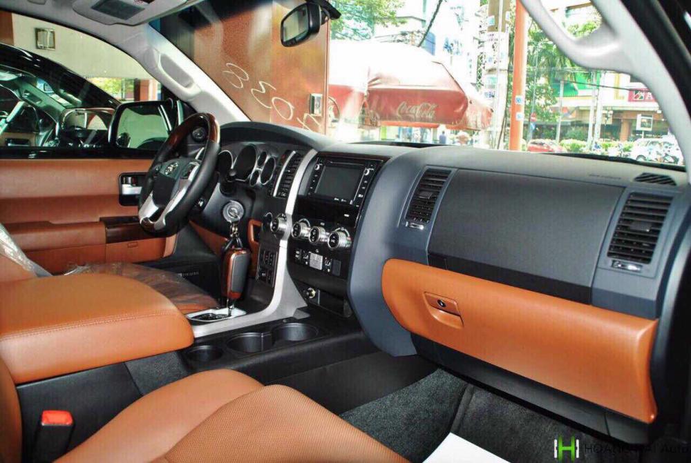 Toyota Sequoia Platinum 5.7 nhập Mỹ sản xuất 2015, đăng ký 2016, màu đen nội thất nâu da bò, xe trang bị động cơ 5.7V8 hộp số tự động 6 cấp, công suất 381 mã lực, màn hình trần, loa JBL, cam kết xe rất mới chính chủ đi 10.000. Check hãng vô tư.
